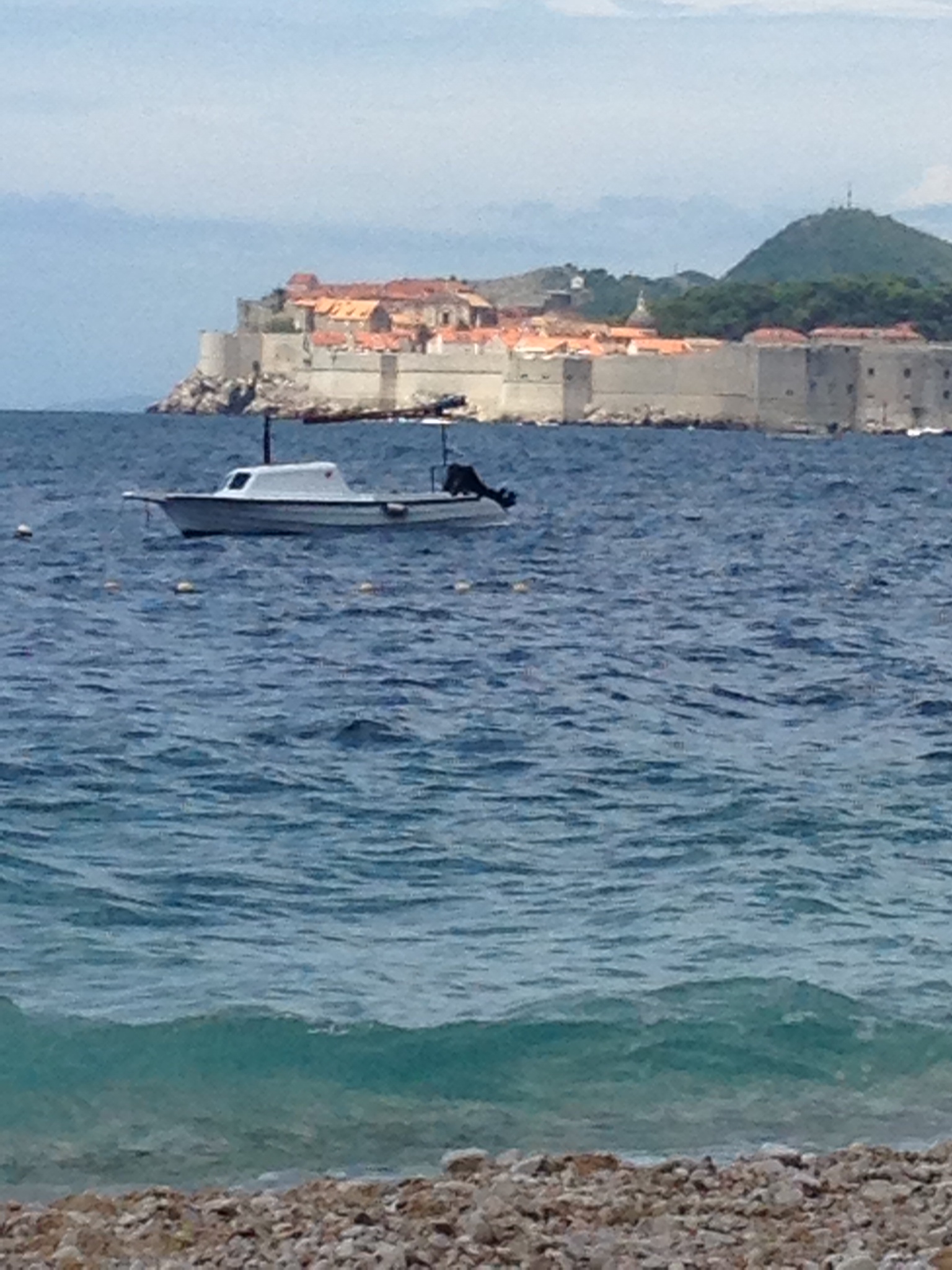 When we arrived there was only one other group of people there. We had our choice of sun loungers (30 kuna). The beach was a mixture of pebbles, stones and sand which meant it was uncomfortable under foot getting into the sea. This is made up for by the views across the bay of the Old Town.