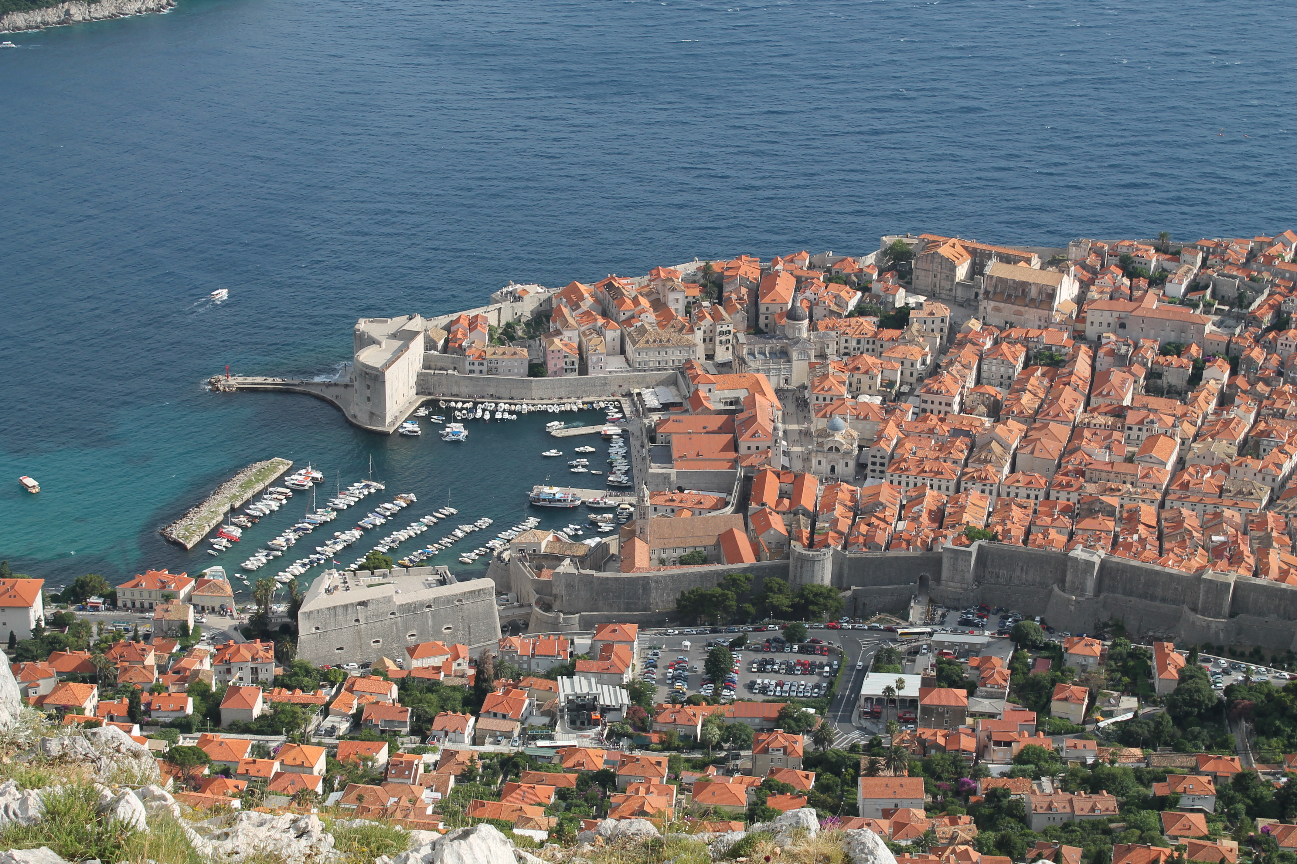 Fraser was fascinated by the history, the highlight of the tour for me though was going up to the roof of the Fort. From here there were uninterrupted views down to the city and also over towards the Elaphite Islands without having to look over the tourists and wires.