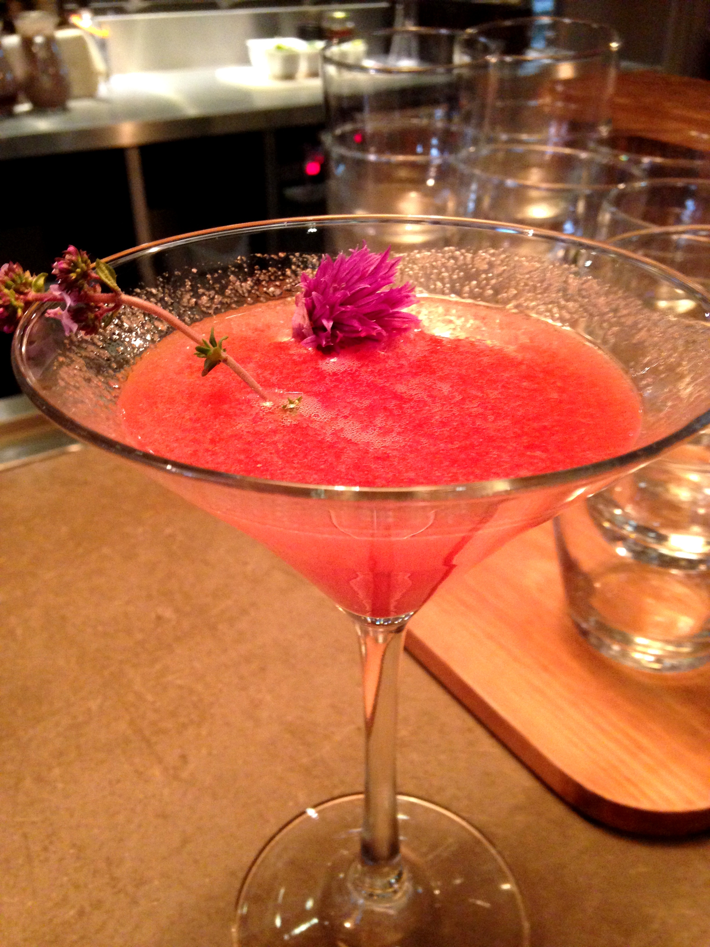 We were greeted with cocktails incorporating Hotel Chocolat’s cocoa gin. They looked beautiful, were very tasty and set the tone for an indulgent evening.